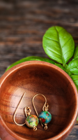 - Experience the beauty of nature with our Sea Sediment Jasper Earrings. Each stone boasts a one-of-a-kind color pattern, created through natural sedimentation. These eye-catching earrings are wrapped in gold-tone wire and fitted with hand-formed hooks. *Round copper wire plated with a layer of pure silver and a tarnish-resistant gold color coating to resist discoloring, chipping, & peeling. REACH and RoHS compliant. Meets EU Nickel Directive.